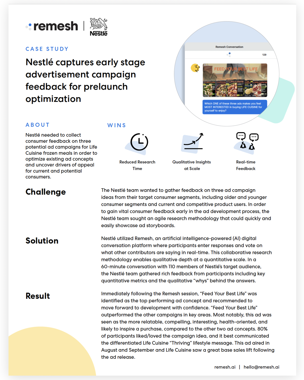 I partnered with Nestlé to create an external case study to increase platform use within the account and boost Remesh credibility.