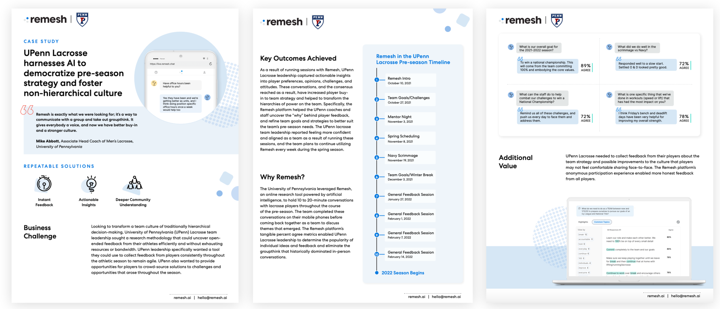 I partnered with the University of Pennsylvania to create an external case study to increase platform use within the account and boost Remesh credibility.